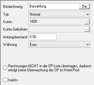 - geben Sie einen Anfangsbestand ein, welcher bei einem Hotelkassenabschluss automatisch gesetzt wird