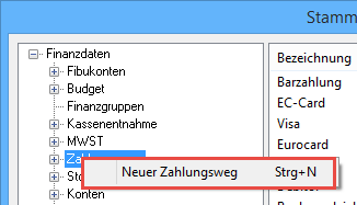 - klicken Sie mit der rechten Maustaste auf "Zahlungsweg" und wählen Sie "Neuer Zahlungsweg